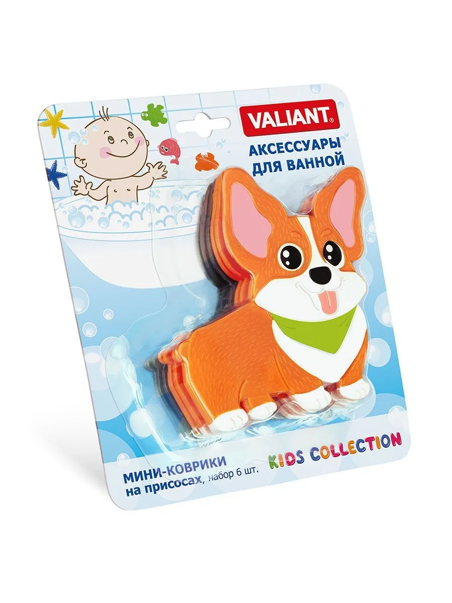 VAL K6-3890 Мини-коврик для ванной комнаты КОРГИ (на присосах), набор 6 шт.