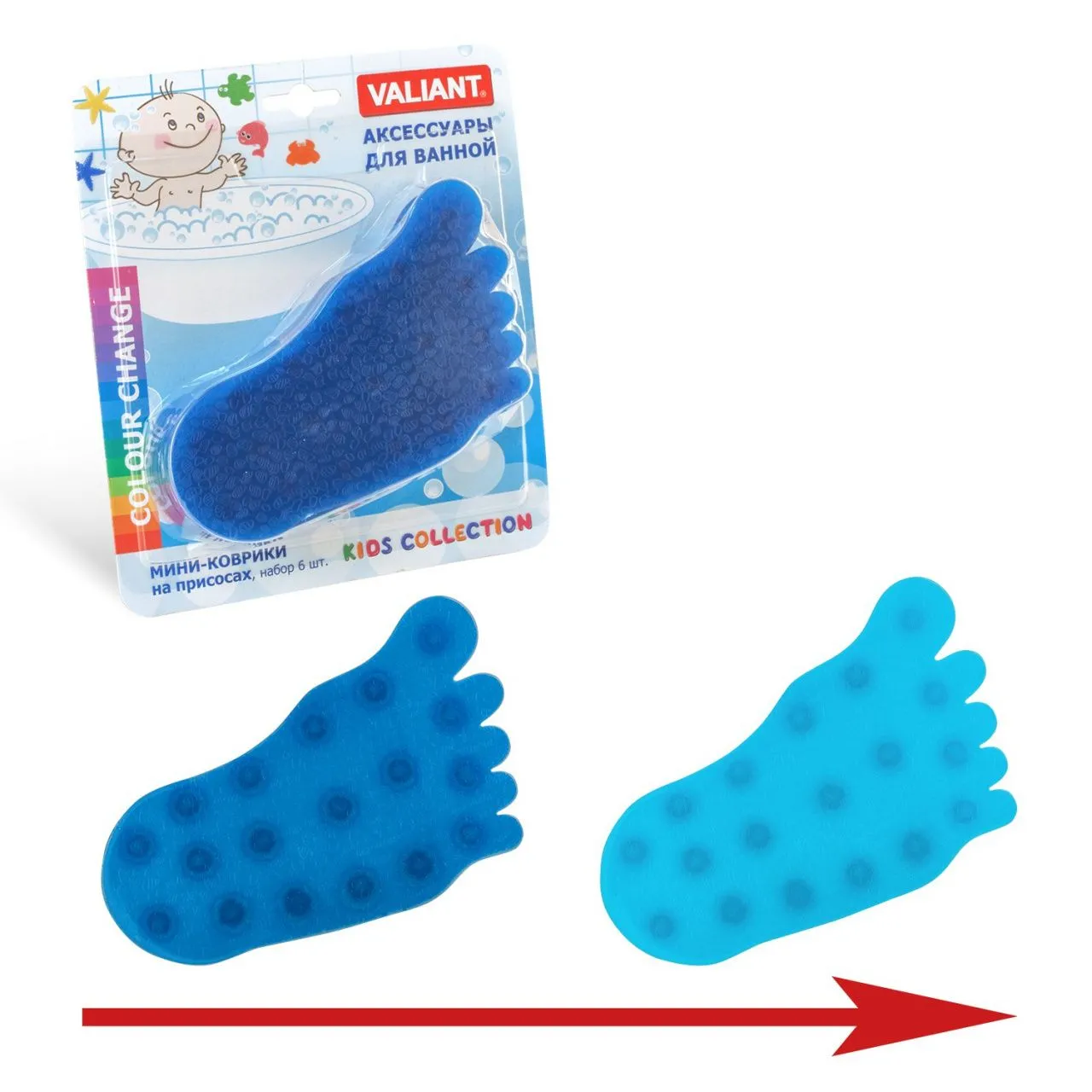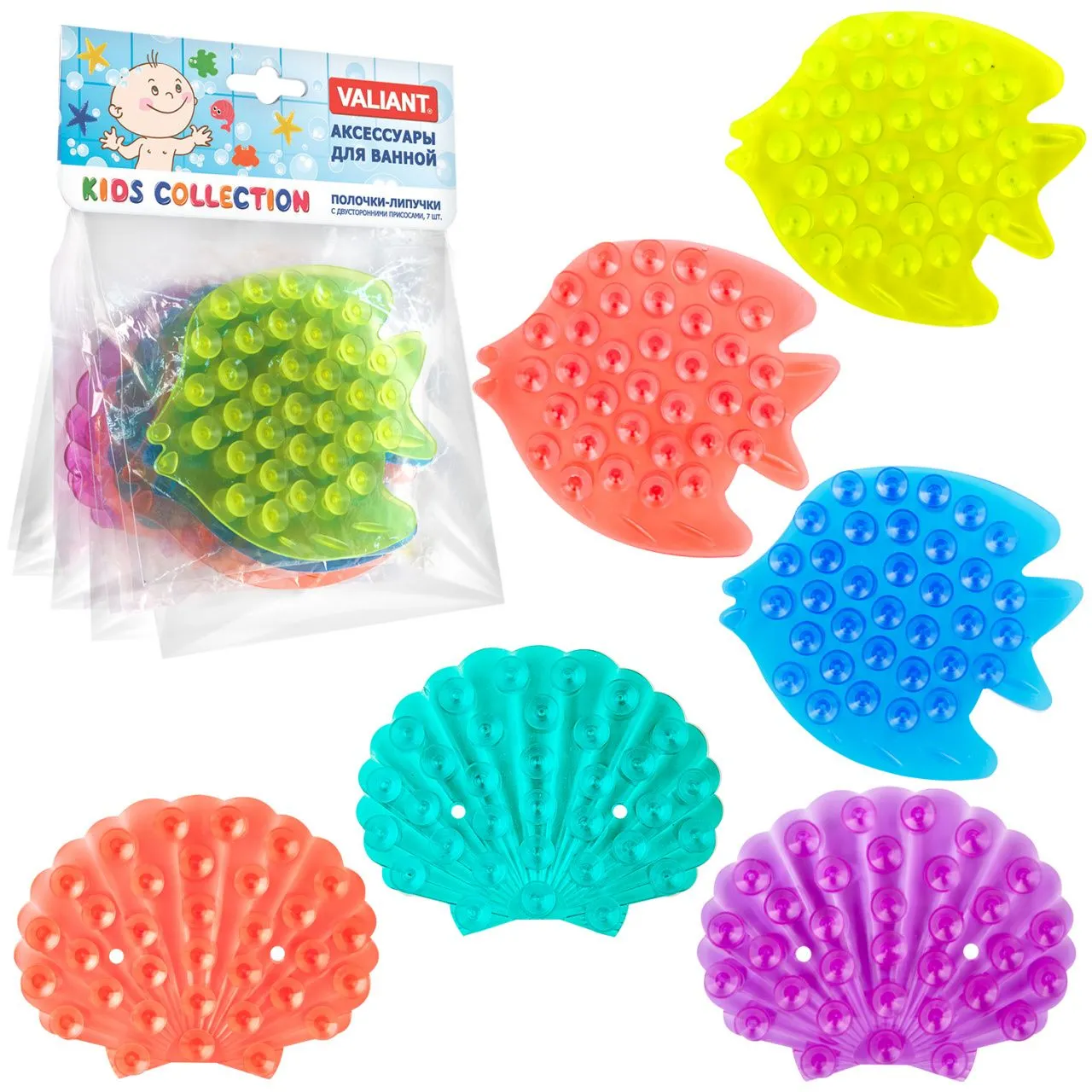 #VAL 1621B Мини коврик для ванной комнаты ДЕЛЬФИН (на присосах), набор 6 шт.