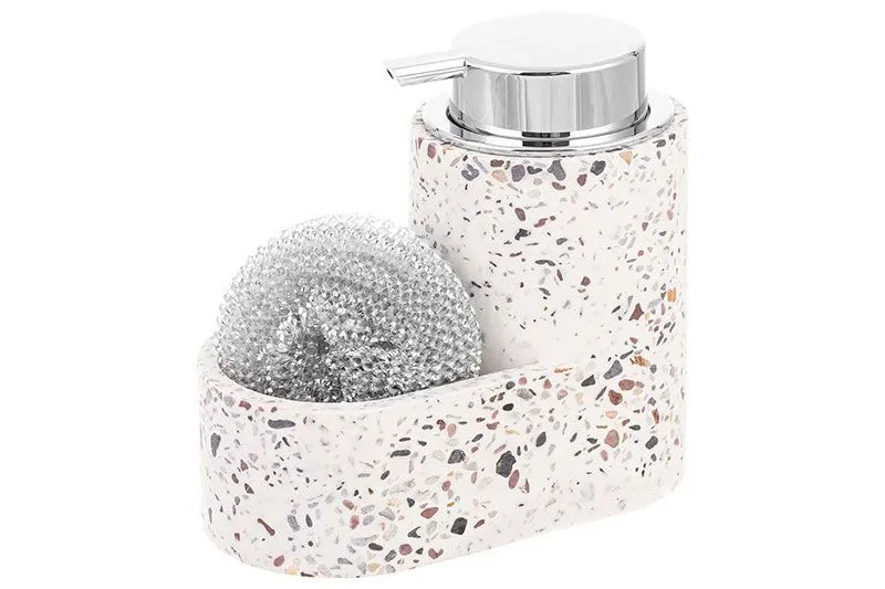 Диспенсер для жидкого мыла "Терраццо" с отделением для губки, 15*8*13,5 см 350 мл, с губкой, высота без дозатора 11 см