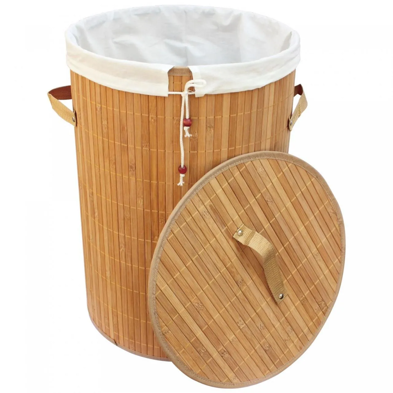 Корзина для белья круглая 34,5*50см, бамбук светлый, арт.312117, Рыжий Кот
