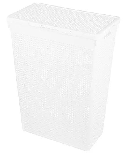 Корзина для белья 50 л "Лофт" 45*26*61,5 см с крышкой (белая) (узкая), размер дна 37*18 см (модель 5650006)