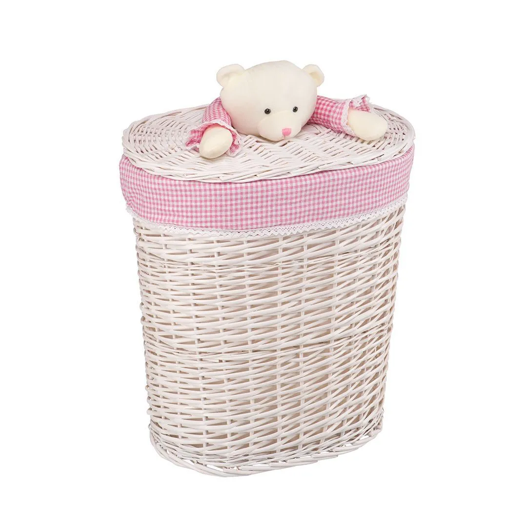 Корзина бельевая "Медвежонок розовый", Д490 Ш370 В550, белый