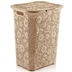 Корзина для белья 50л ажурная бежевая
