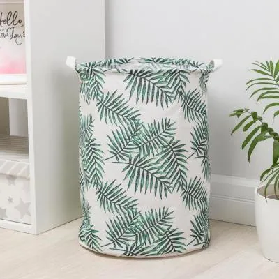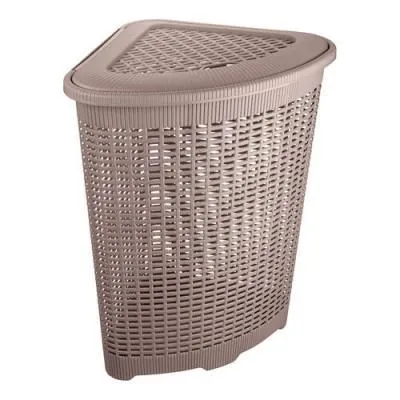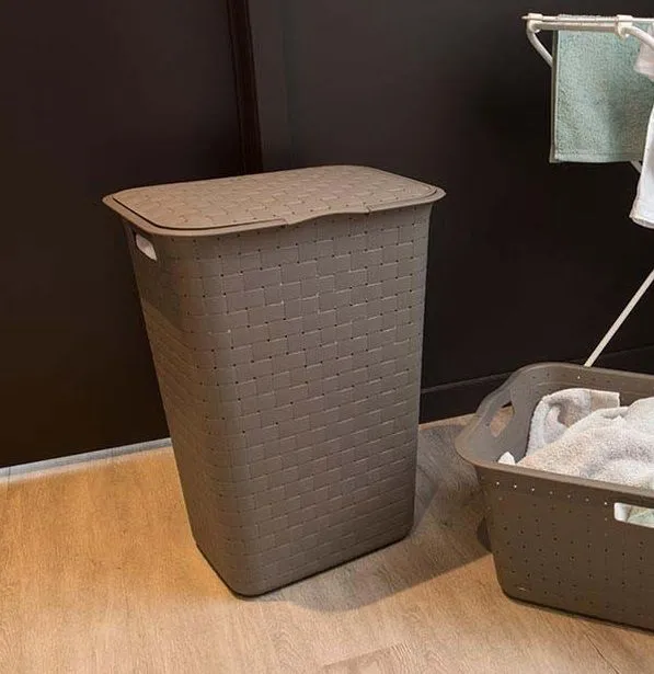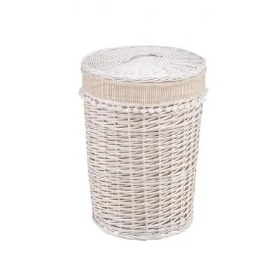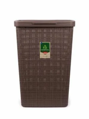 Корзина для белья квадратная, белая, под дерево с белыми ручками 40*29*22см