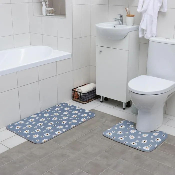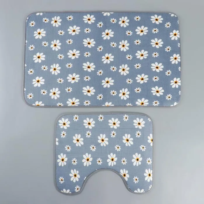 Набор ковриков для ванны и туалета 2 шт, 50х80, 44х50 см "Ромашки" цвет серый 5058276