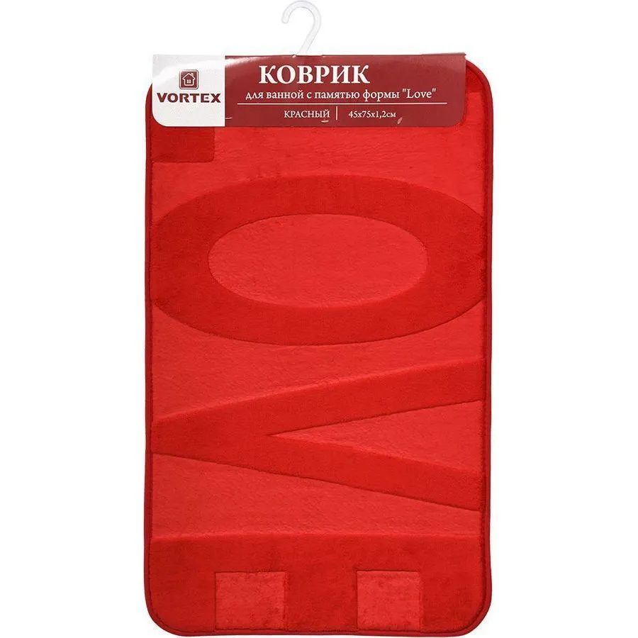 #Коврик для ванной c памятью формы Love 45*75*1,2см, красный VORTEX/10, пп-пакет