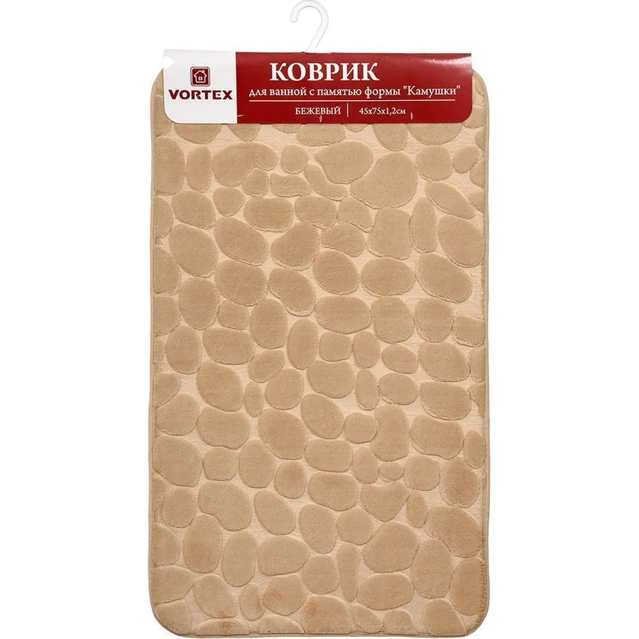 Коврик для ванной c памятью формы Камушки 45*75*1,2см, бежевый VORTEX/10, пп-пакет