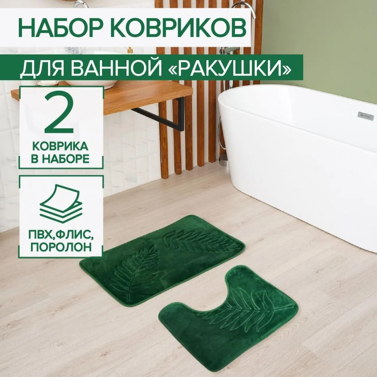 Набор ковриков для ванны и туалета 2 шт 40х50, 50х80 см "Тропики" цвет хаки 4568696