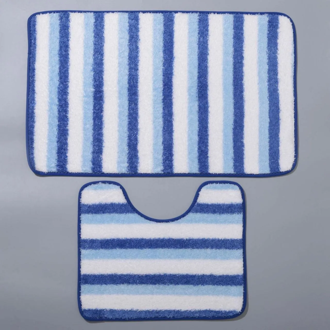 Набор ковриков для ванны и туалета 2 шт 50х80, 40х50 см "Полосатик" цвет сине-белый 5412445