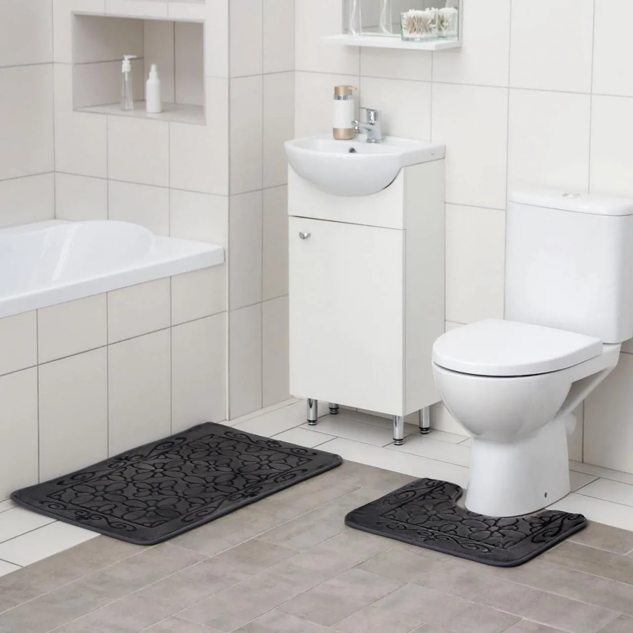Набор ковриков для ванны и туалета 2 шт 45х70, 39х45 см "Мэри" цвет серо-синий 5432474