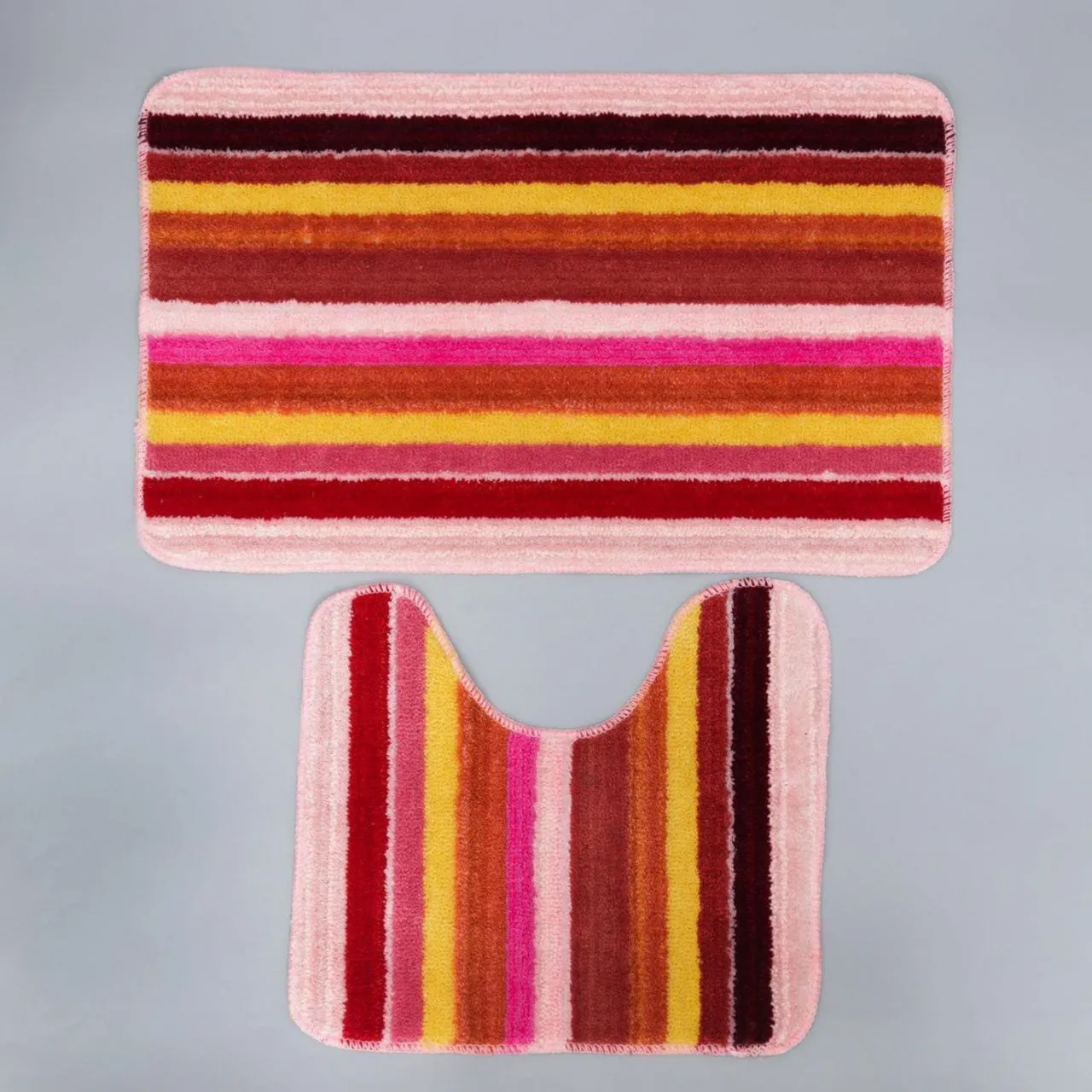 Набор ковриков для ванной и туалета 2 шт "Полоски" 45х70, 45х35 см, цвет розовый 2353273