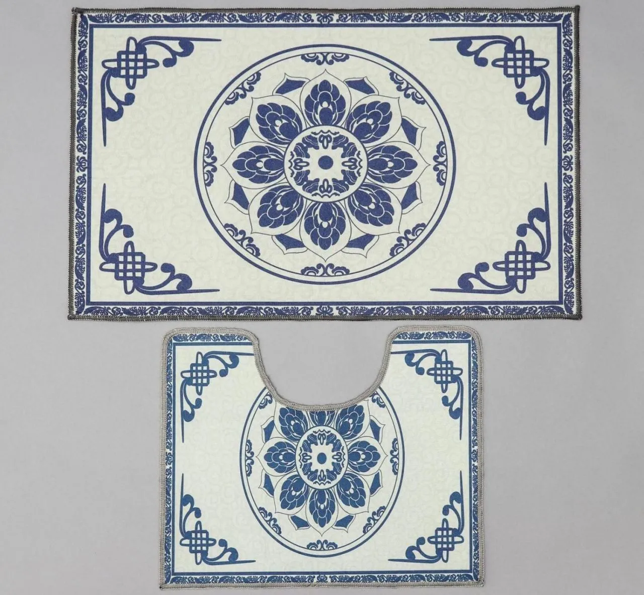 Набор ковриков для ванной и туалета 2 шт "Адиса" 50х78 см, 40х50 см, синий 5139242
