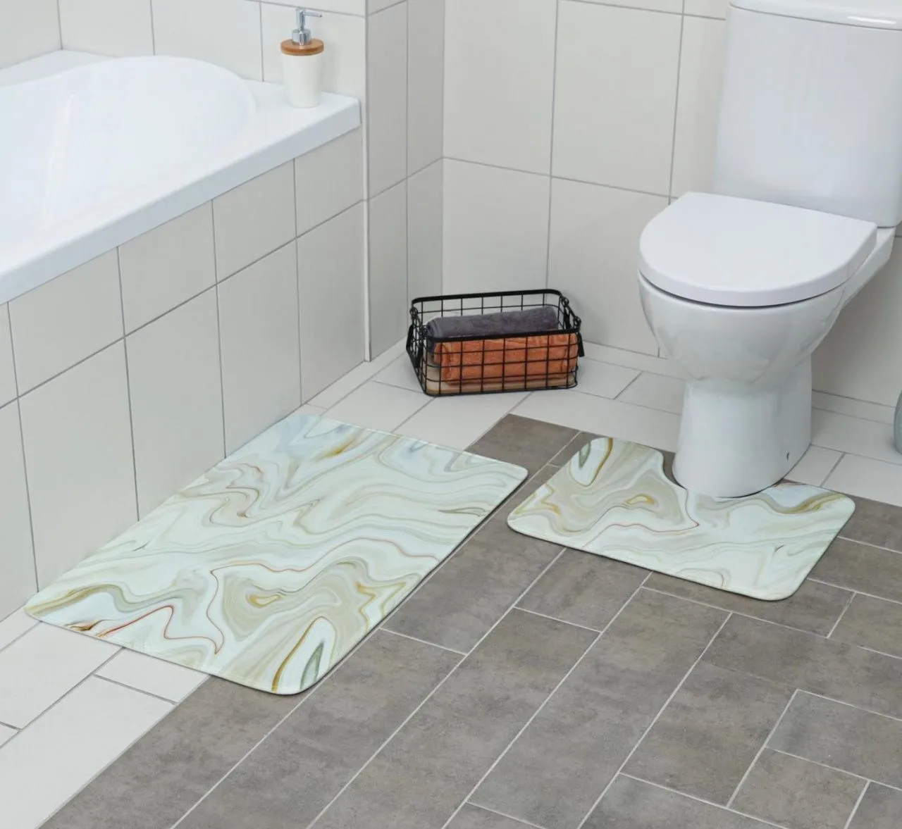 Набор ковриков для ванны и туалета 2 шт 79х50, 50х39 см "Мрамор" цвет бежевый 5148846