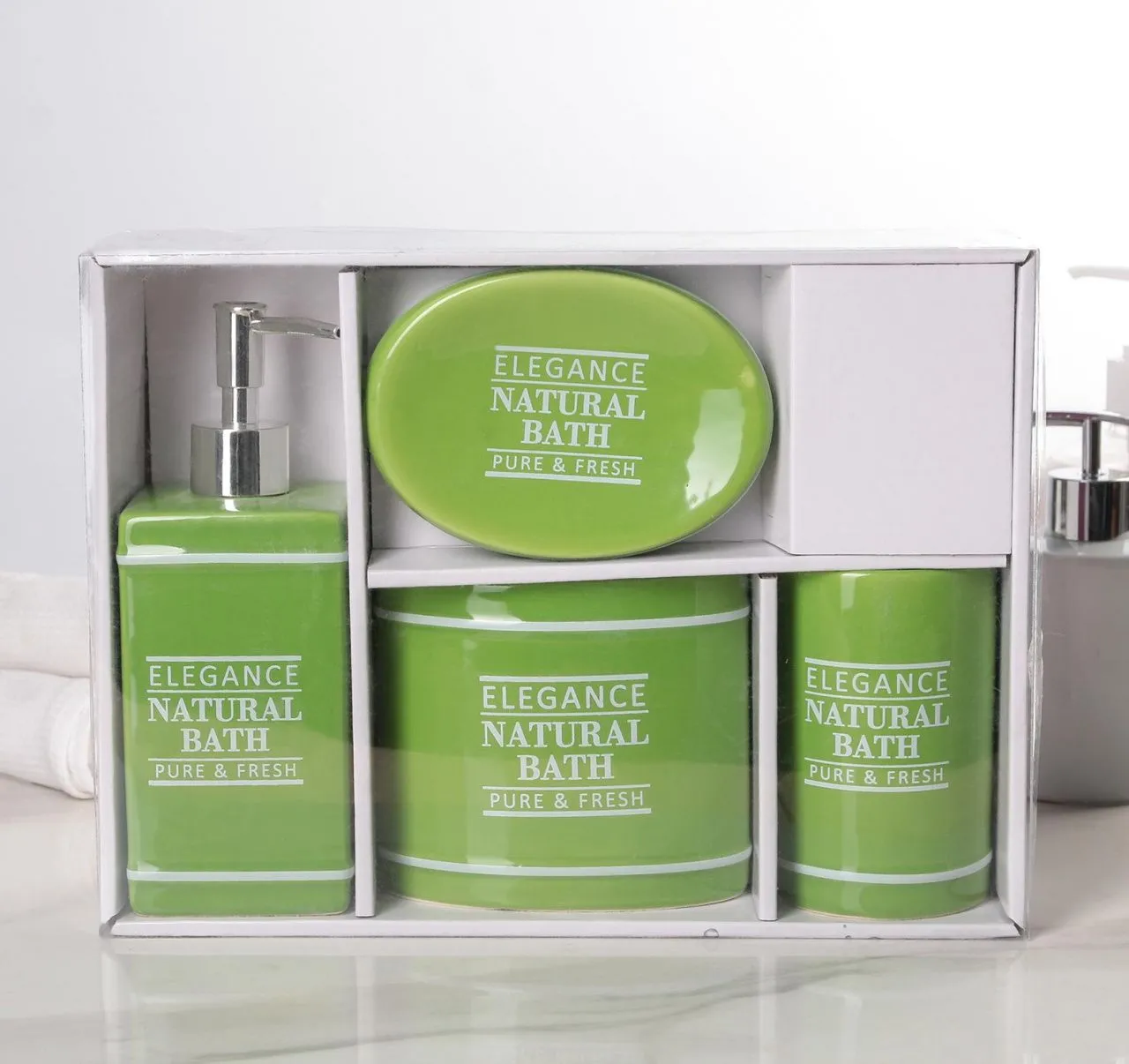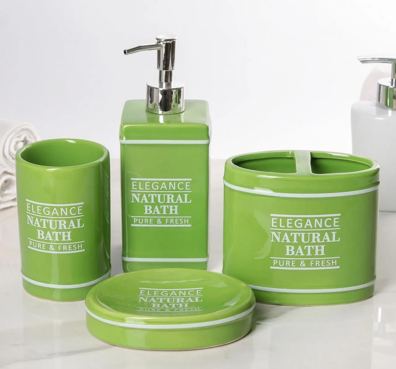 Набор аксессуаров для ванной комнаты, 4 предмета "Elegance", цвет зелёный