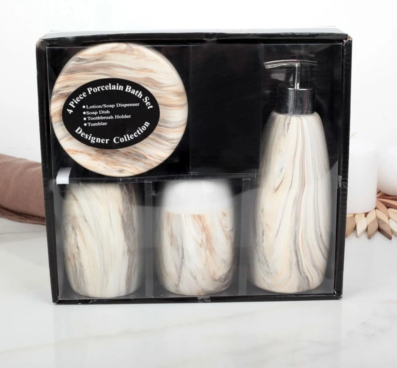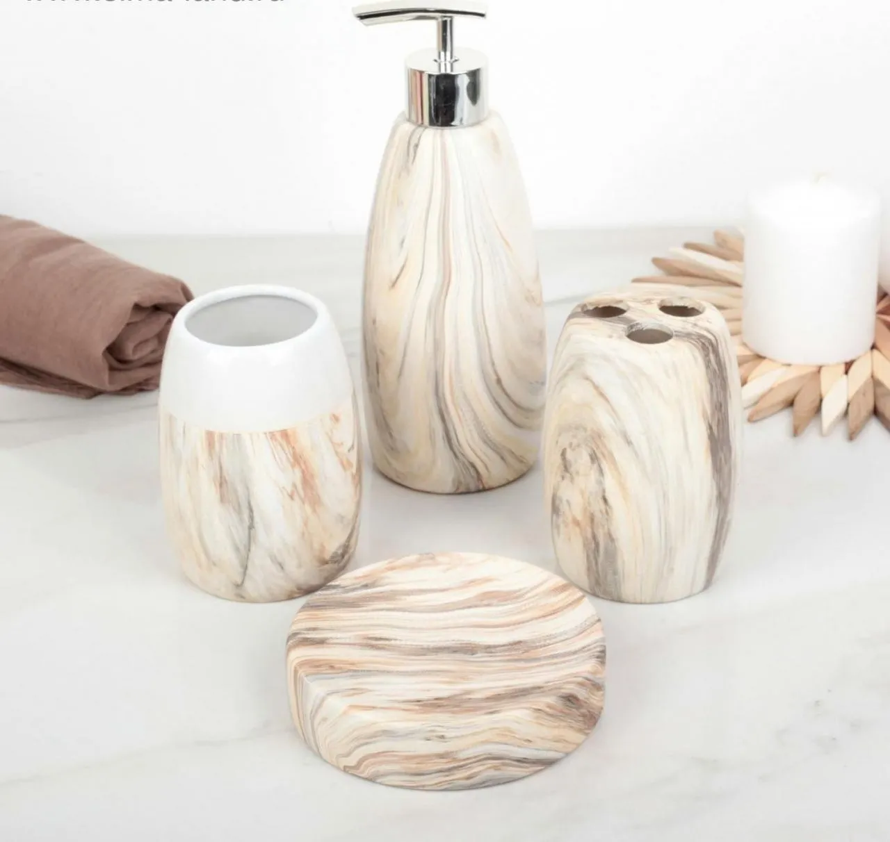 Набор аксессуаров для ванной комнаты, 4 предмета "Мрамор", цвет бежевый