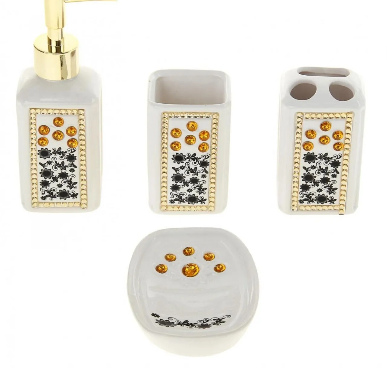 Набор аксессуаров для ванной комнаты, 4 предмета "Стразы. Золото"