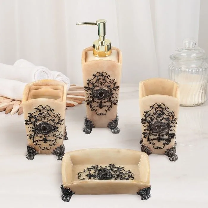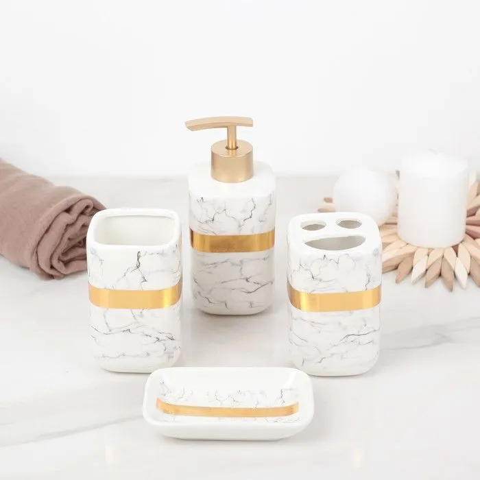 Набор для ванной "Natural", 4 предмета (мыльница, дозатор для мыла, 2 стакана), цвет белый 3954584