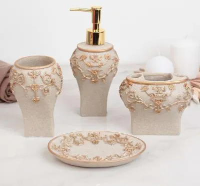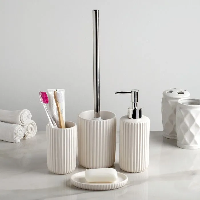 Набор для ванной "Natural", 4 предмета (мыльница, дозатор для мыла, 2 стакана), цвет серый 3954585