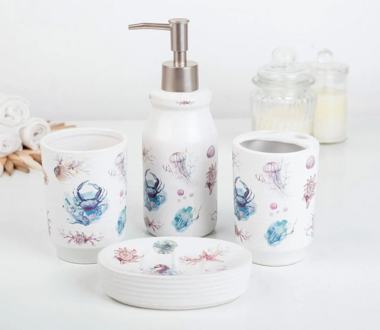 Набор для ванной "Бриз" 4 предмета: мыльница, дозатор для мыла, 2 стакана