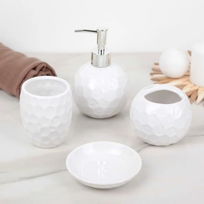 Набор для ванной "Каменный шар" 4 предмета, цвет белый