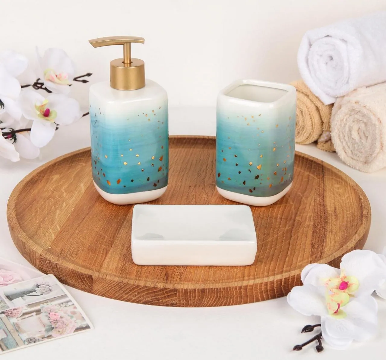 Набор для ванной "Нептун", 3 предмета (мыльница, дозатор для мыла, стакан), цвет синий 4481947