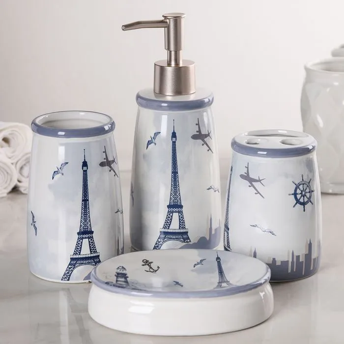 Набор для ванной "Париж" 4 предмета: мыльница, дозатор для мыла, 2 стакана