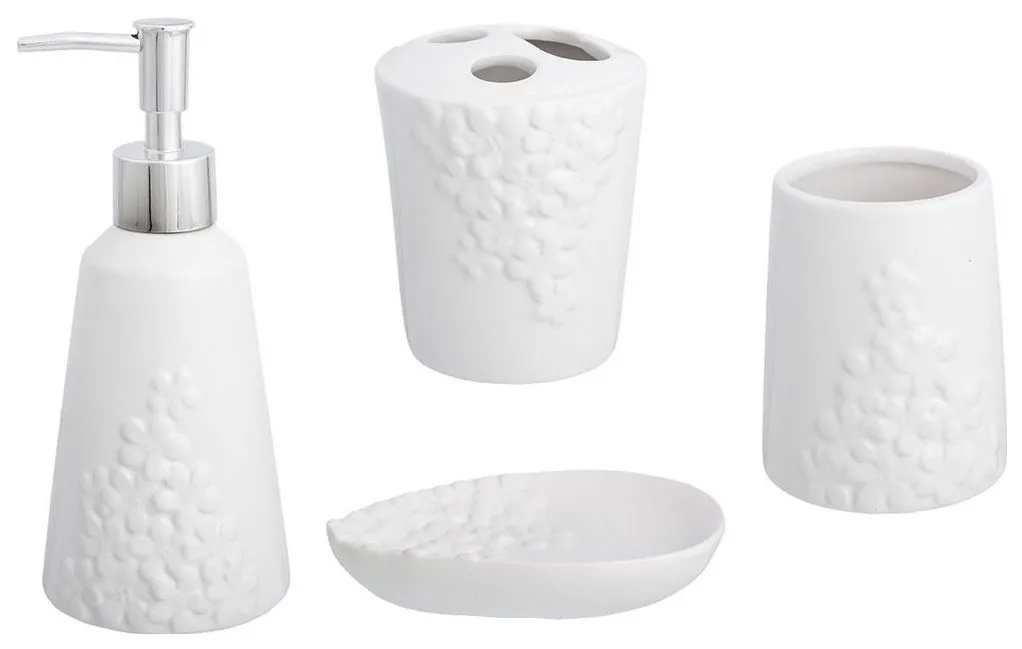 НАБОР ДЛЯ УМЫВАНИЯ 4 ПР.:ДОЗАТОР ДЛЯ МЫЛА+СТАКАН+ПОДСТАВКА ДЛЯ ЗУБНЫХ ЩЕТОК+МЫЛЬНИЦА (КОР=12НАБ.) 437-005
