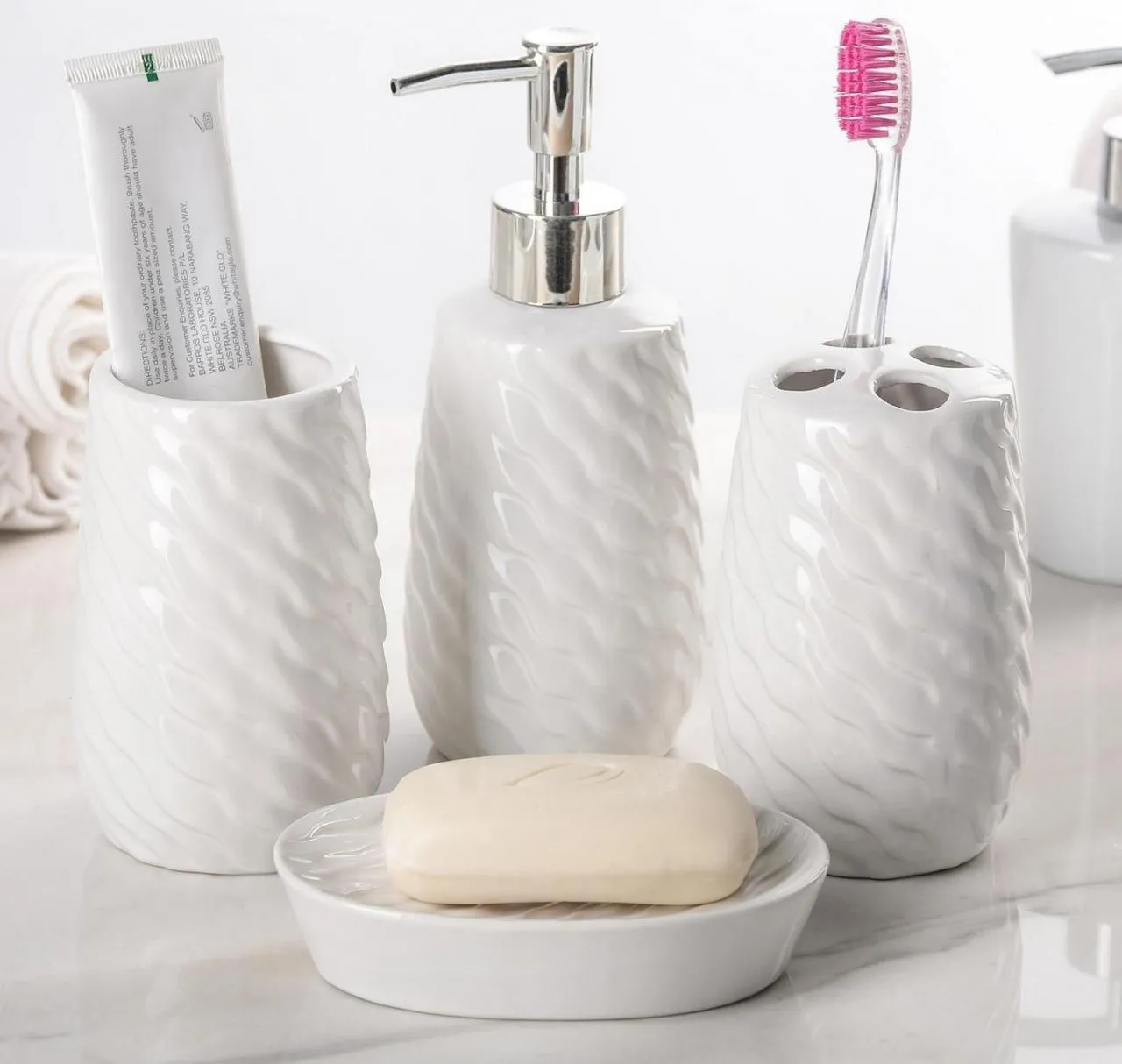 Набор для ванной 4 предмета (дозатор, мыльница, 2 стакана), цвет белый 3025954