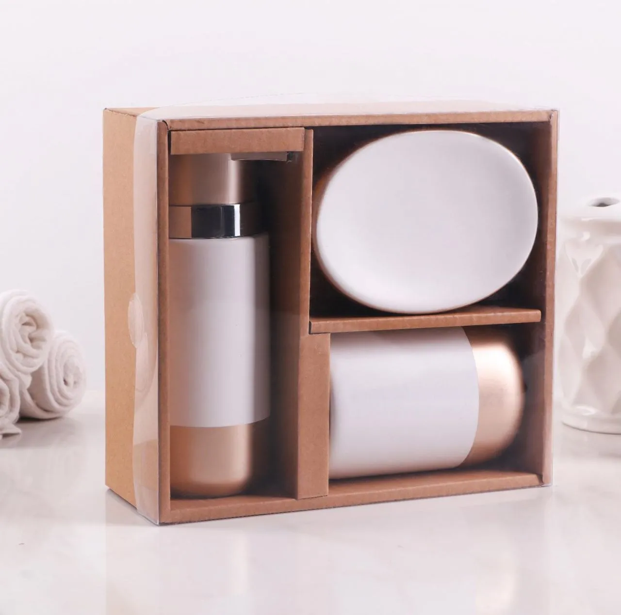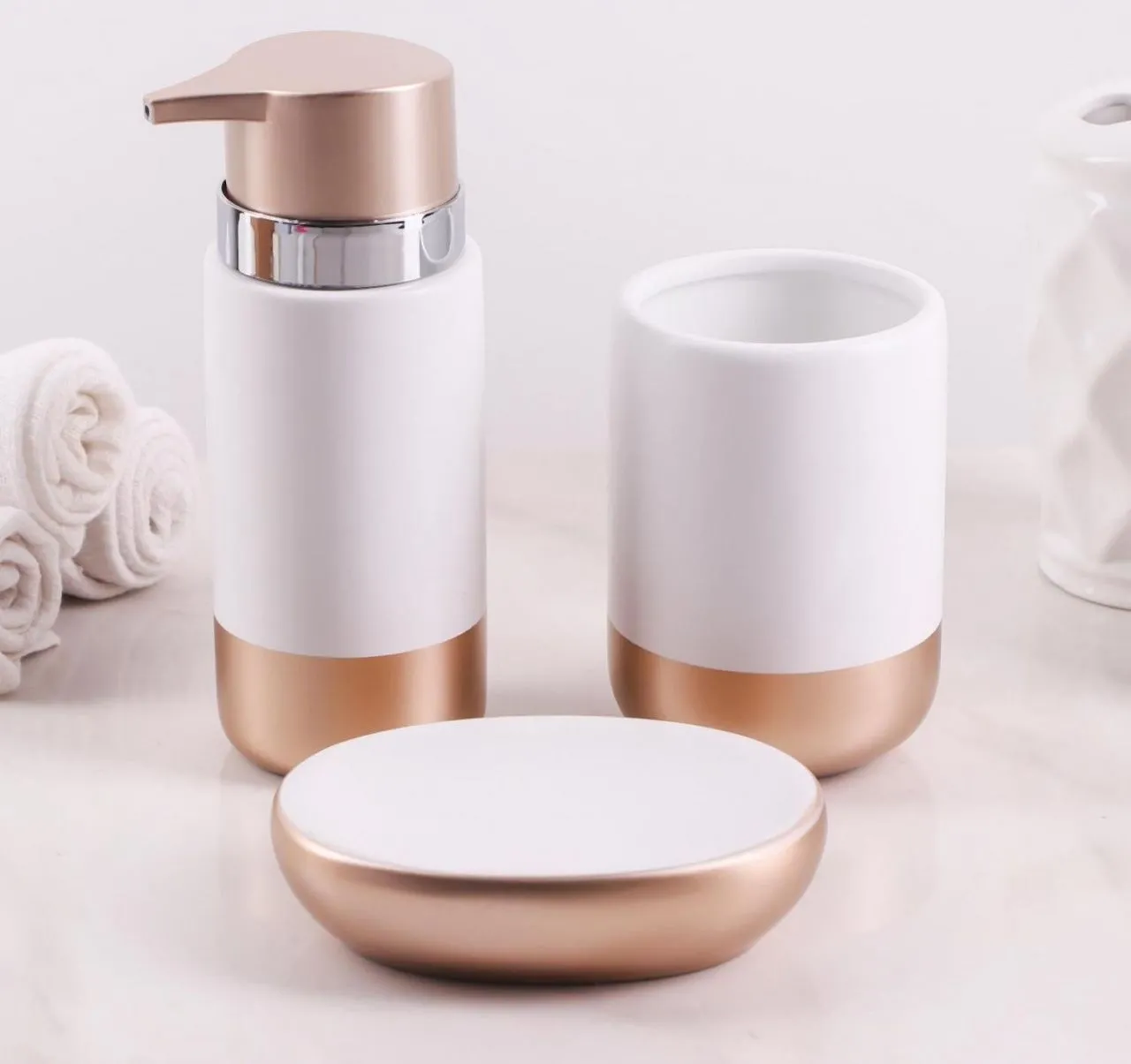 Набор для ванной "Руж" 3 предмета (мыльница, дозатор для мыла, стакан), белый 4694169