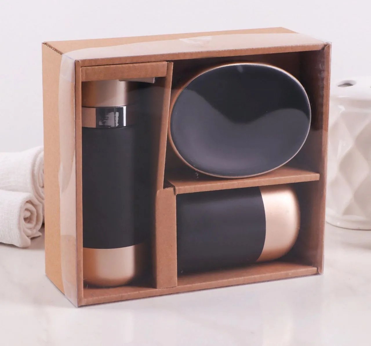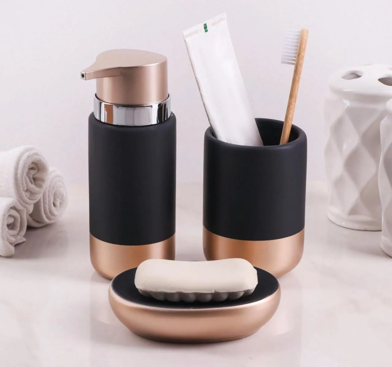 Набор для ванной "Руж" 3 предмета (мыльница, дозатор для мыла, стакан), черный 4694170