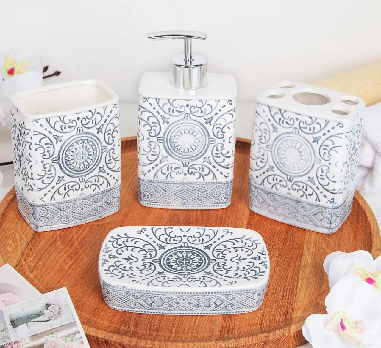 Набор для ванной "Тунис" 4 предмета (Дозатор, мыльница, 2 стакана) 2499649