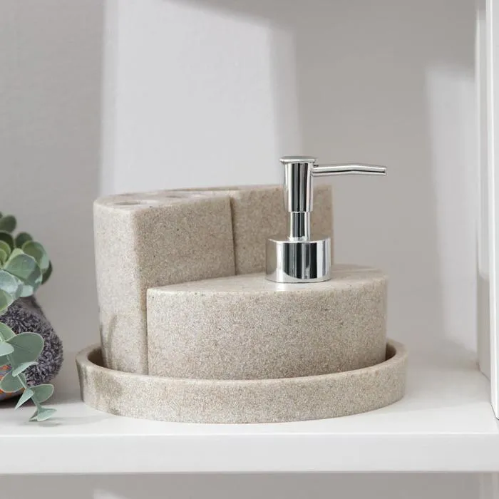 Набор для ванной, 4 предмета (2 стакана, дозатор для мыла, подставка), цвет бежевый 3956302