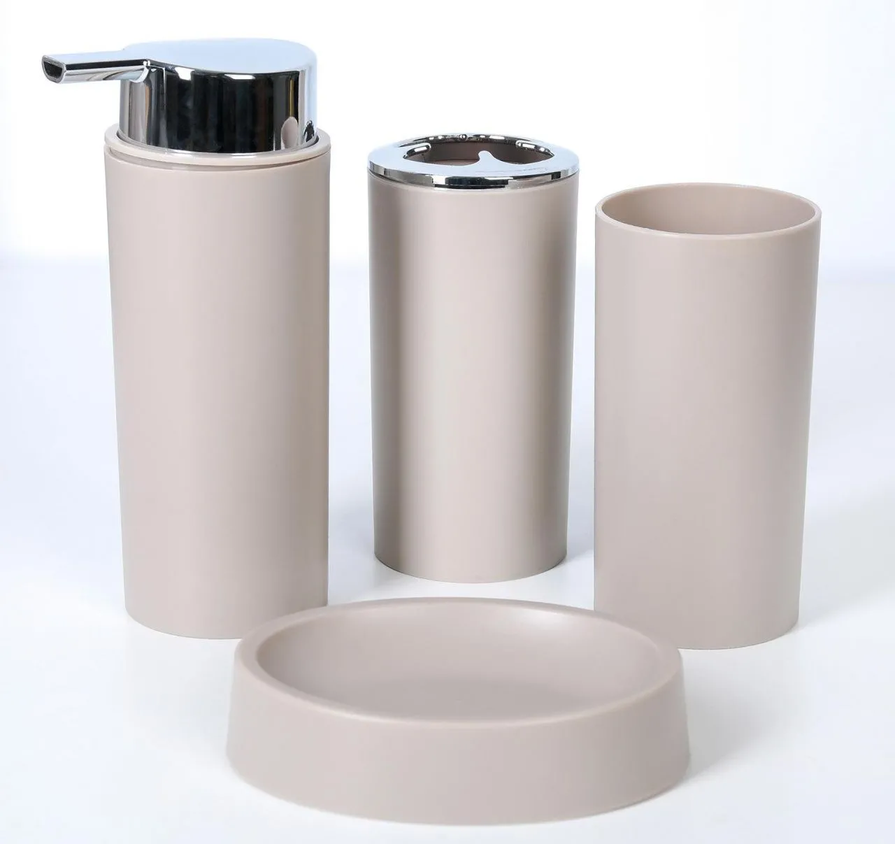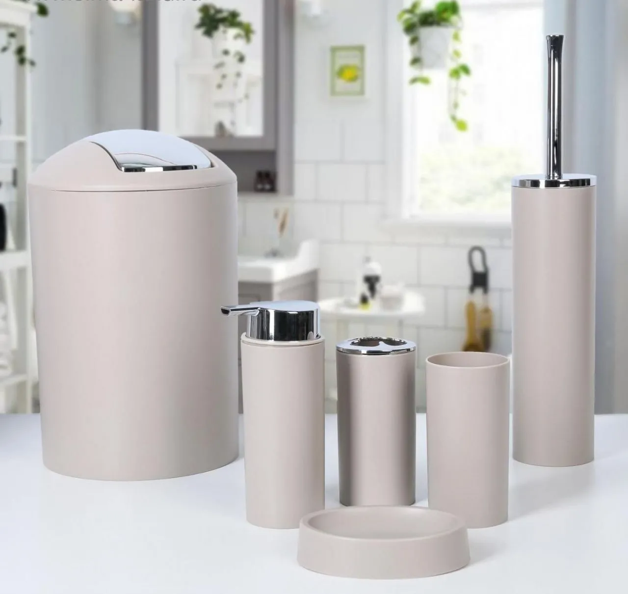 #Набор для ванной "Сильва" 6 предм. (мыльница. дозатор, 2 стакана, ерш, ведро), цвет серый 4098366