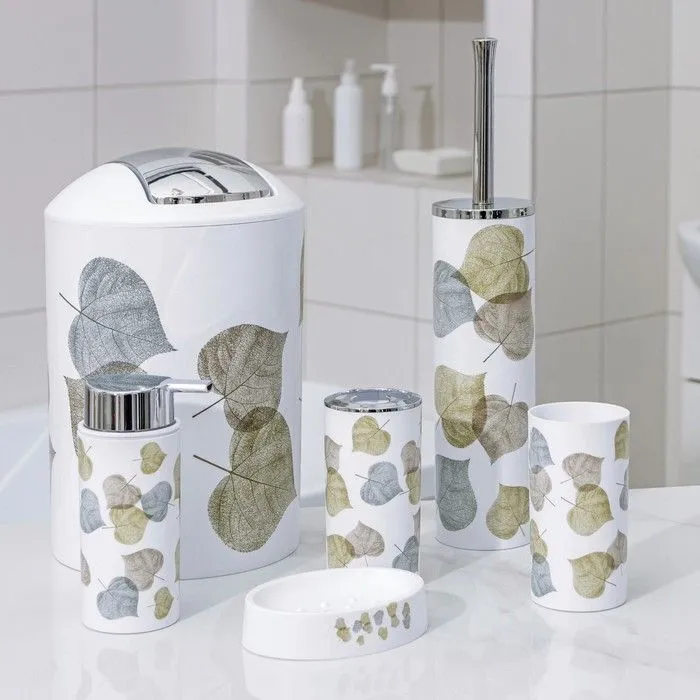 #Набор для ванной "Осень" 6 предм. (мыльница. дозатор для мыла, 2 стакана, ершик, ведро) 4098364