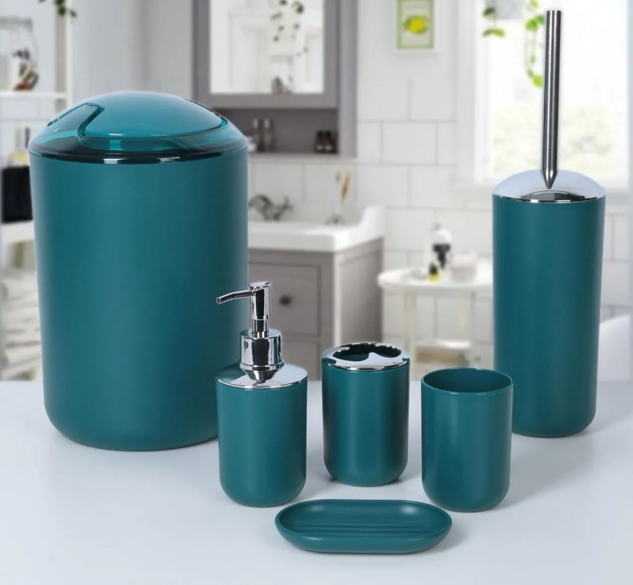 Набор для ванной "Тринити" 6 пред.(мыльница. дозатор, 2 стакана, ерш, ведро), цвет синий 4098371