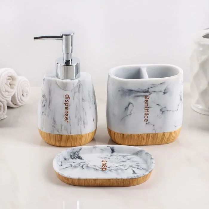 Набор для ванной "For" 3 предмета (мыльница, дозатор для мыла, стакан) 4697139