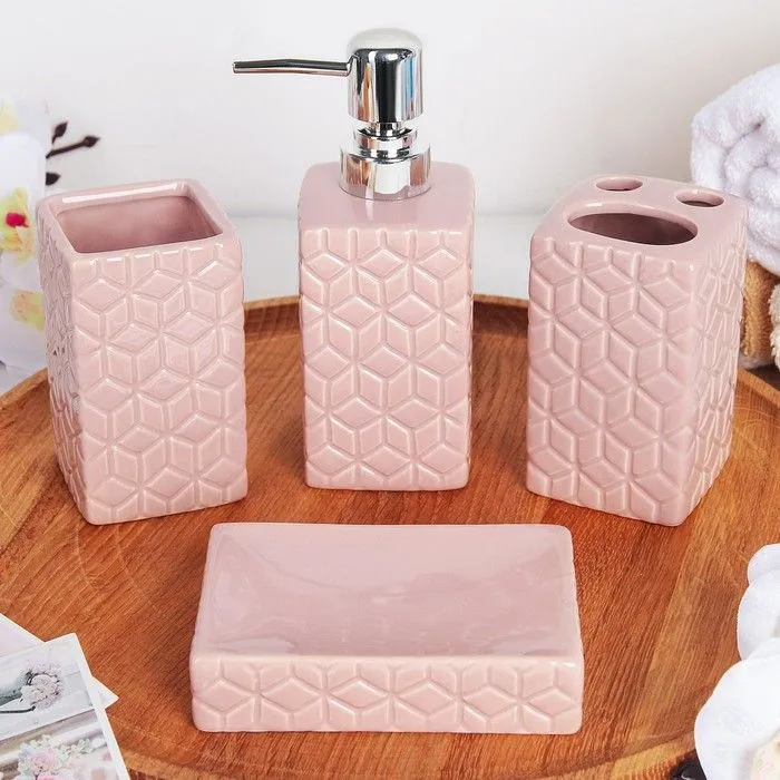 Набор для ванной "Звезды" 4 предмета (мыльница. дозатор для мыла, 2 стакана), цвет розовый 4503522