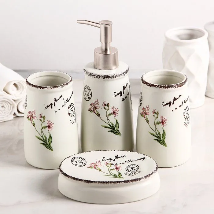 Набор для ванной "Лютики", 4 предмета (мыльница, дозатор для мыла, 2 стакана) 4333632