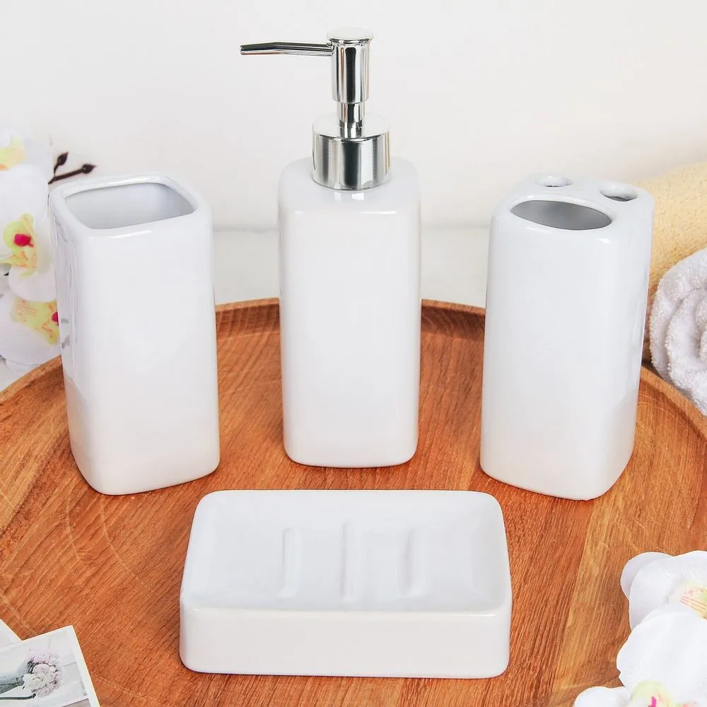 Набор для ванной "Джун белый" 4 предмета (мыльница. дозатор для мыла, 2 стакана) 1580150