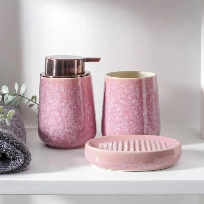 Набор для ванной "Барма" 3 предмета (мыльница. дозатор для мыла, стакан), розовый 5224969