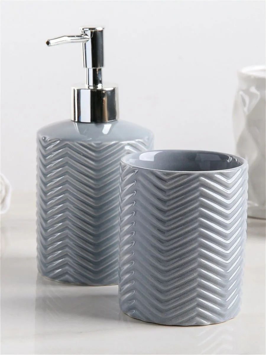 Набор для ванной "Минимал", 2 предмета (дозатор для мыла, стакан), цвет серый 4439048