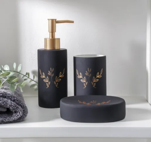 Набор для ванной "Венец" 3 предмета (мыльница. дозатор для мыла, стакан), черный 5224979