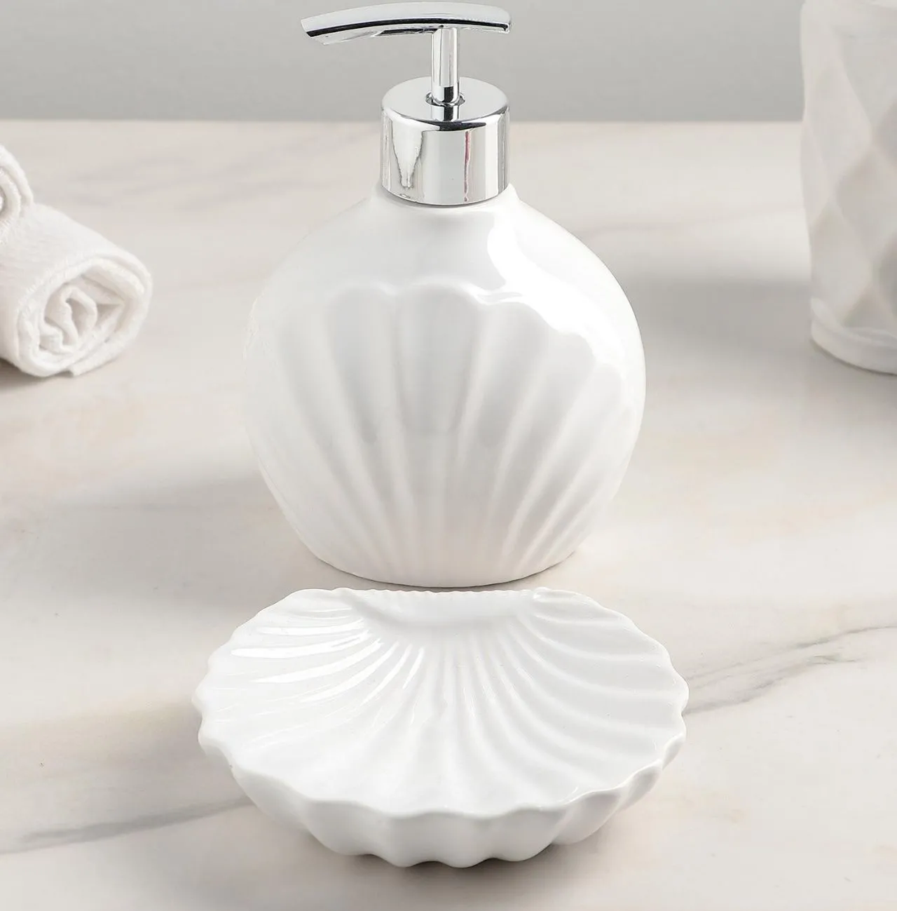Набор для ванной "Ариэль", 2 предмета (мыльница, дозатор для мыла), цвет белый 4563554