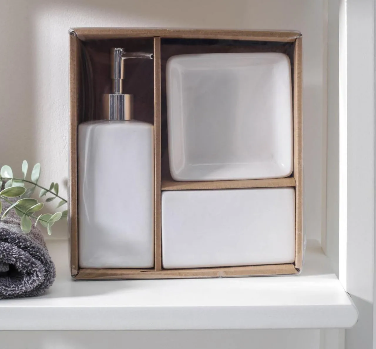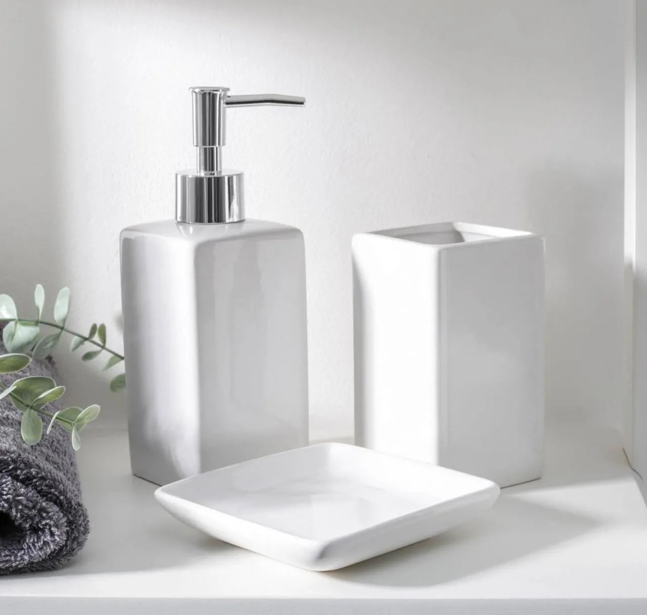 Набор для ванной "Лодж", 3 предмета (мыльница, дозатор для мыла, стакан), цвет белый 5224945