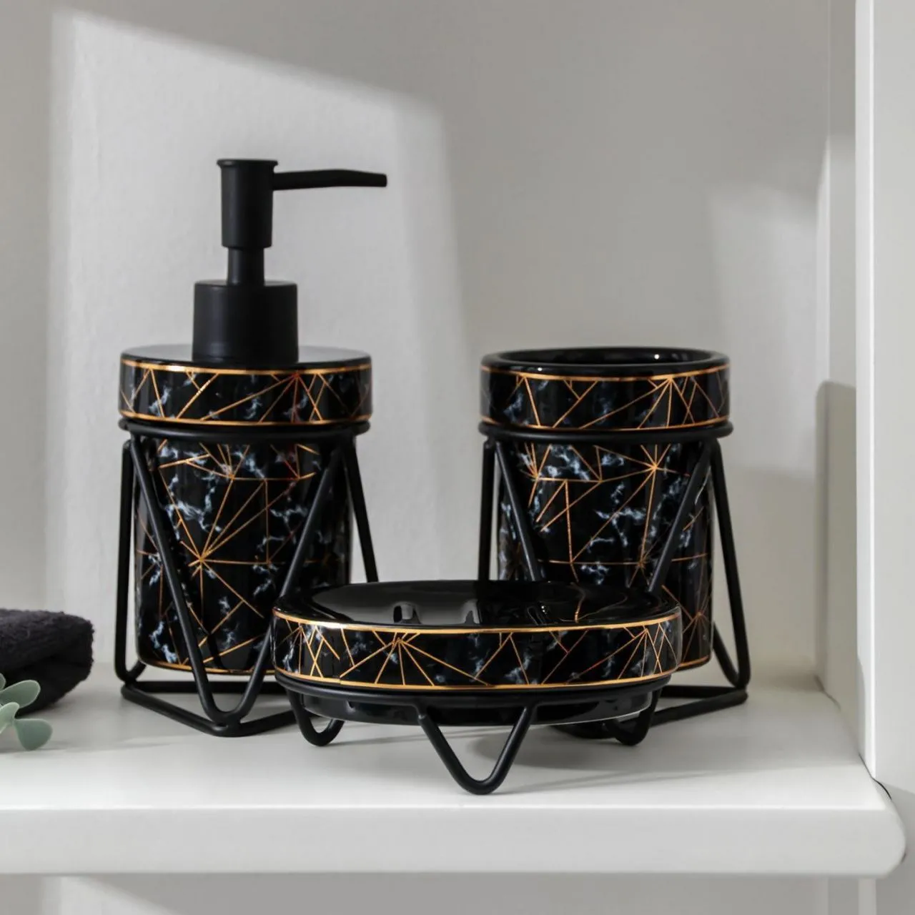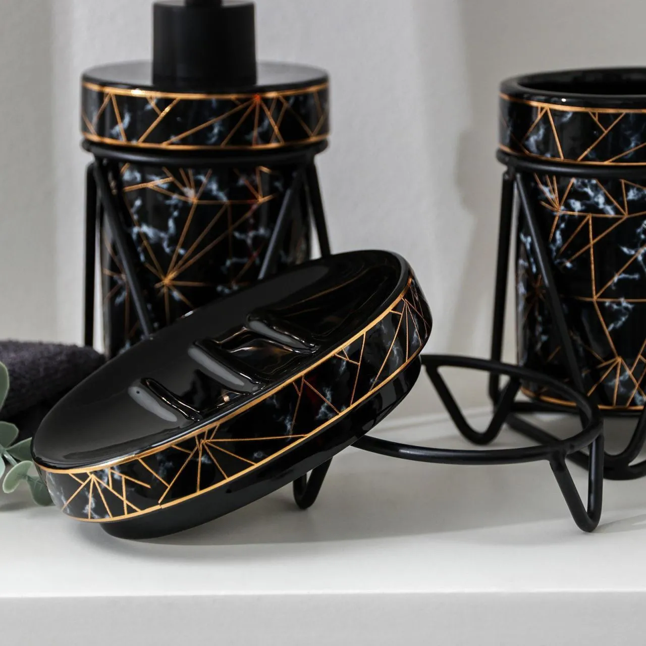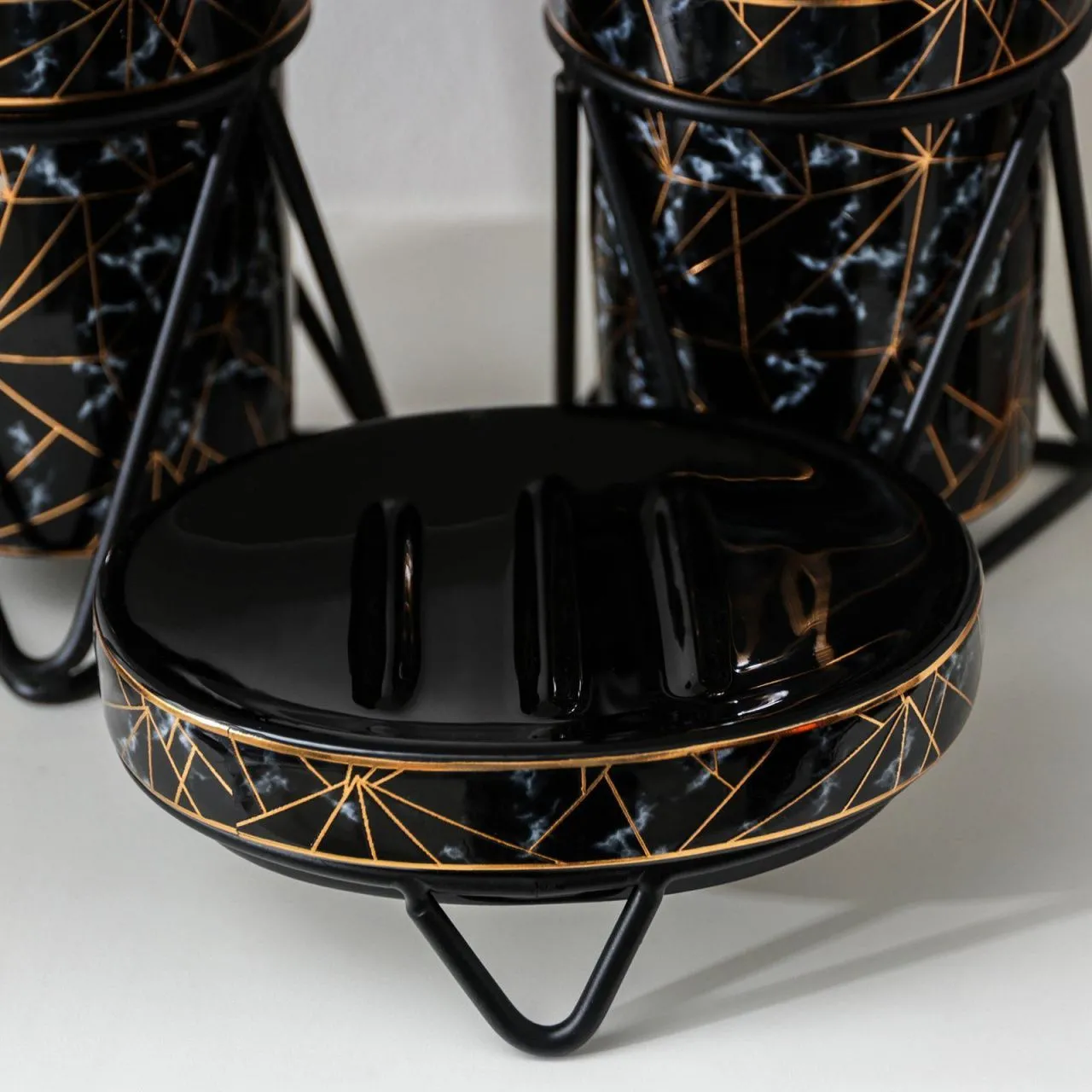 Набор для ванной "Геометрика" 3 предмета (мыльница. дозатор для мыла, стакан), черный 5459646