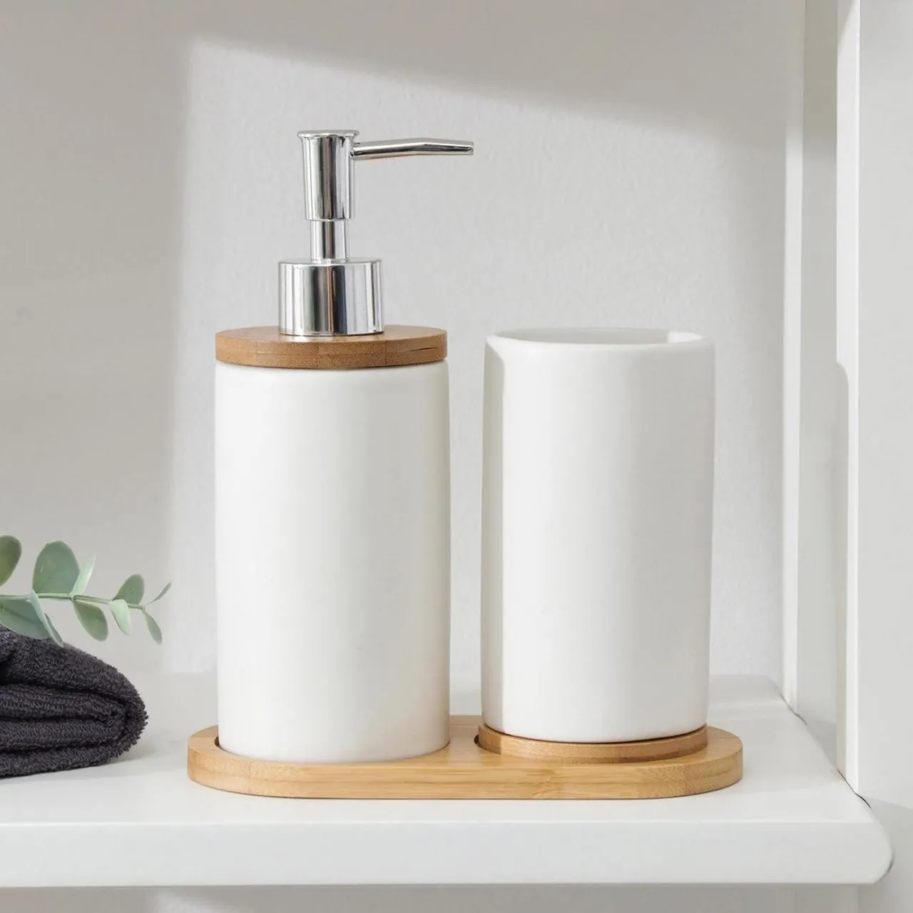 Набор для ванной "Натура", 2 предмета на подставке, цвет белый 6073199