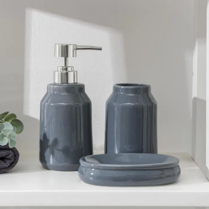 Набор для ванной "Глянец" 3 предмета (мыльница. дозатор для мыла, стакан), цвет серый 5459657