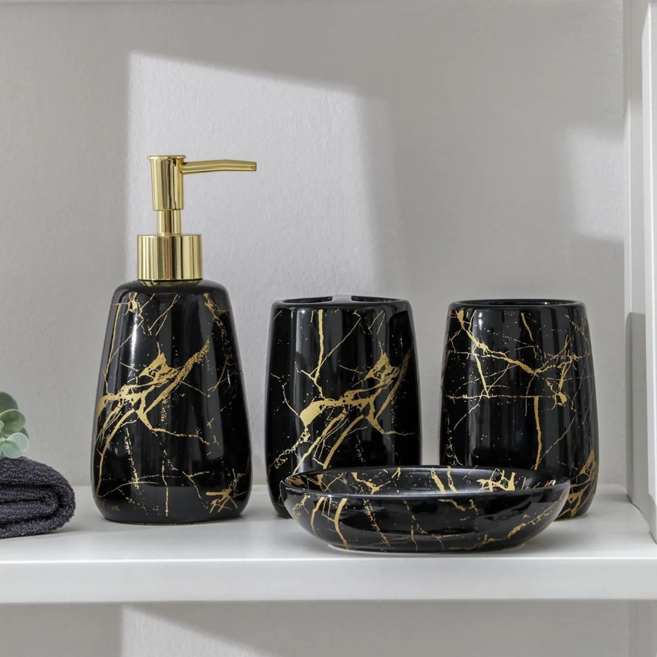 Набор для ванной "Молния", 4 предмета (мыльница, дозатор для мыла, 2 стакана), черный 6243804