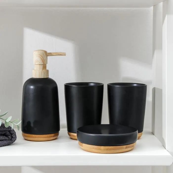Набор для ванной "Эко" 4 предмета (мыльница. дозатор для мыла, 2 стакана), цвет черный 6851677