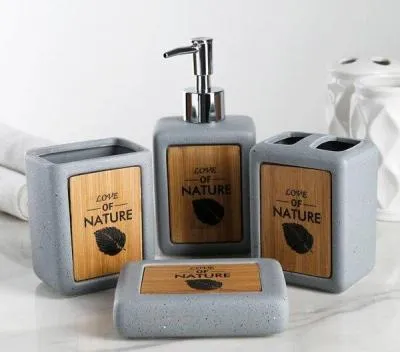 Набор для ванной 3 предмета "Белый с бронзой" мыльница - 12,5*8,5*2,2 см, дозатор - 7,5*7,5*17 см 400 мл, (высота без дозатора - 11 см), стакан для зу